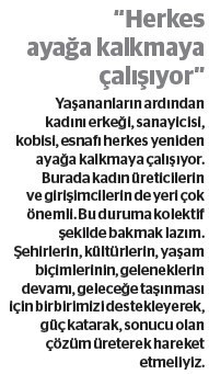 “Kadının gücüne her vakit inan­dım, inanmaya da devam edeceğim. Geleceğin inşasında bayanlar her za­man önde olacak” diyen Ebru Bayba­ra Demir ile zelzele gününü ve bu sü­reçte yaşadıklarını konuştuk.