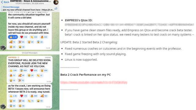 Empress’in Telegram kümesinden 170 bini aşkın üyesine Hogwarts Legacy’nin crack kademesinde Beta 2’ye geldiğini ve betayı test etmek için istekli oyuncular aradığını bildirdi.