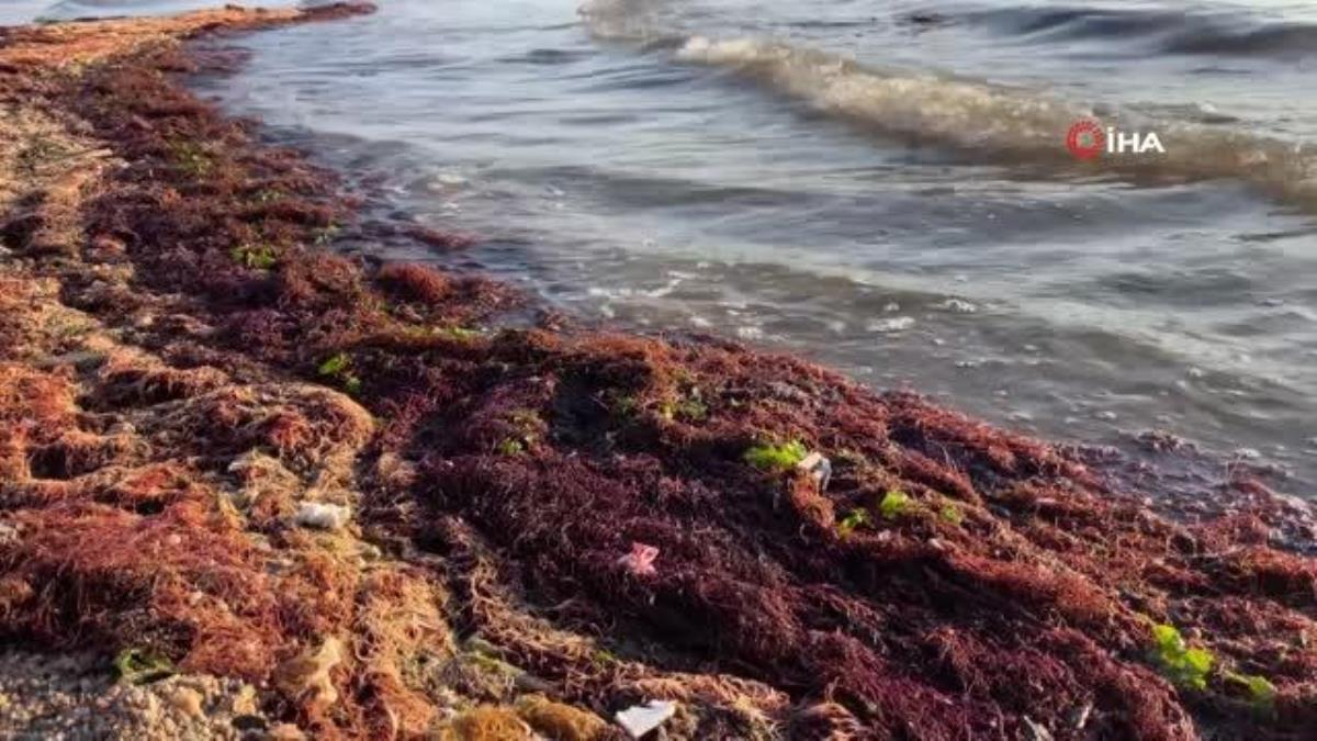 KOCAELİ – Kocaeli’de İzmit Körfezi’nin kıyı şerdi kırmızı renkli yosunlarla kaplandı.
