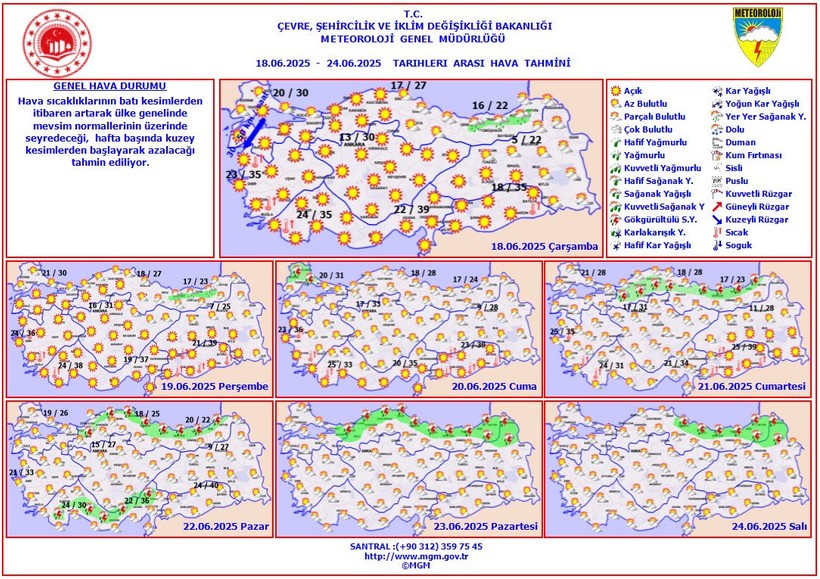 Bölge bölge hava durumu (18 Haziran Çarşamba)